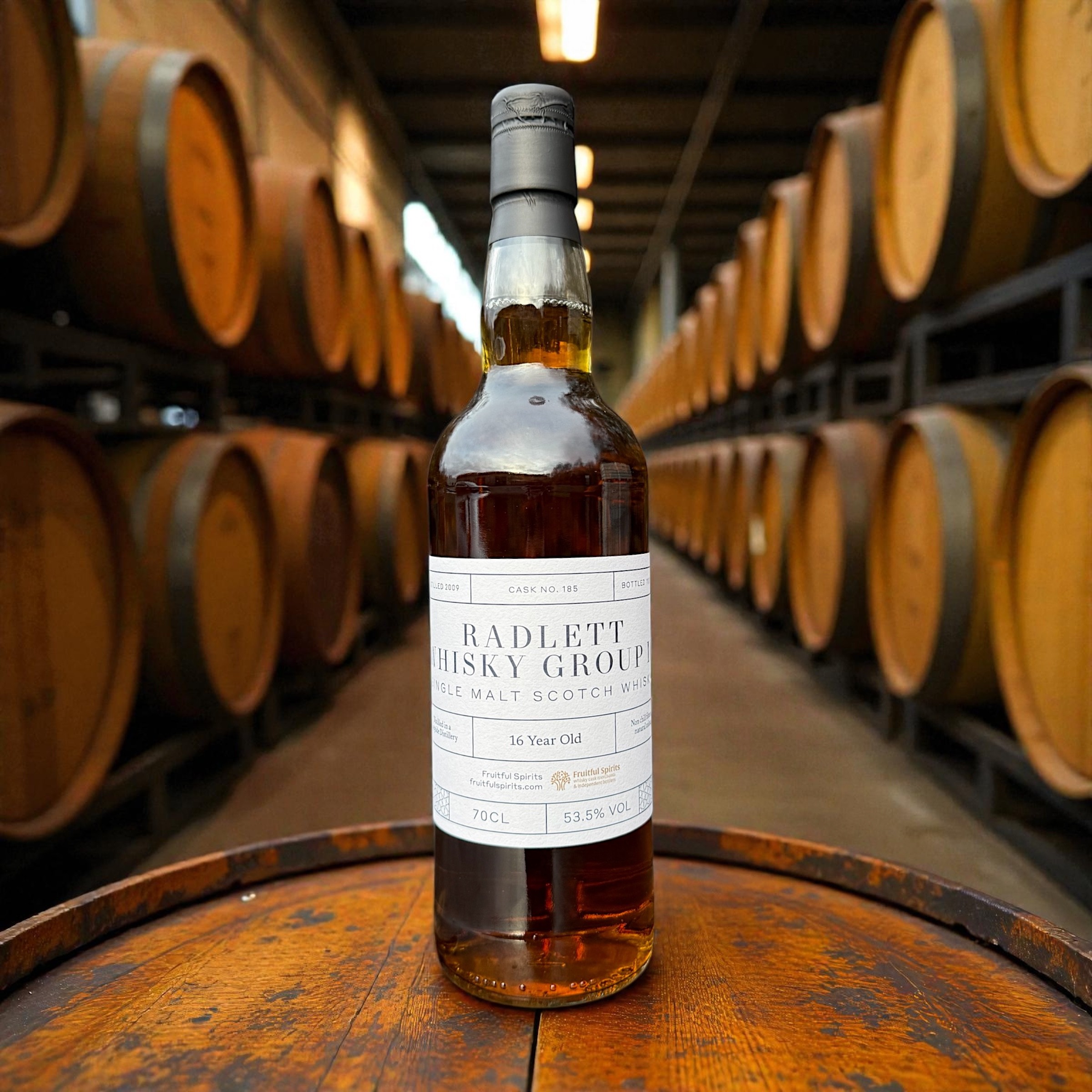 Bottled exclusively for the Radlett Whisky Group, this Speyside 16 Year Old spirit was matured for 13 years in Ex-Bourbon Casks, before a 3 Year finish in STR Hogsheads. A rounded Secret Speyside delivering vanilla, honey and orchard fruit from bourbon casks, enriched by red berries, toasted oak and warming spice through extended STR maturation. Bottled at 53.5% ABV with no added colouring or chill-filtration, this release is limited to just 72 bottles.